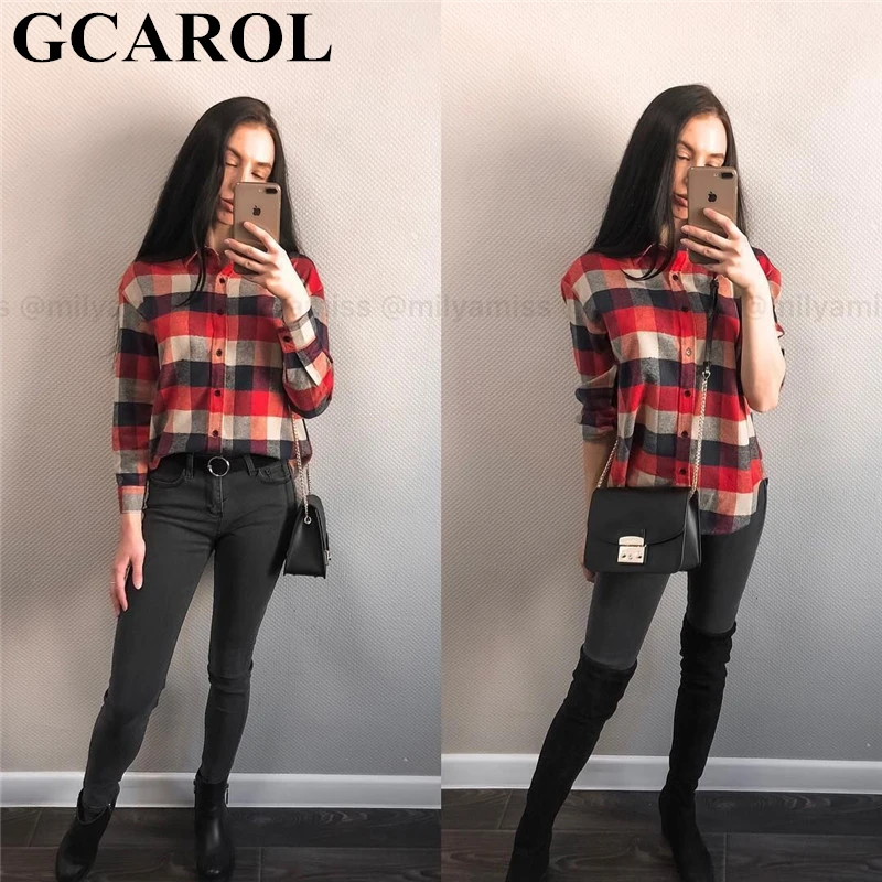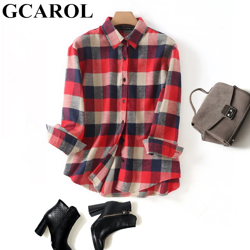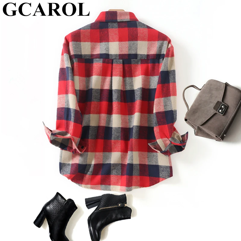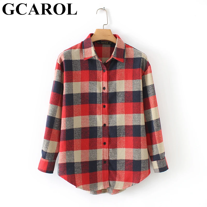 Best GCAROL 2019 Early Spring Women Colorful Plaid Blouse Oversize Worsted Blends OL Work Shirt High Qua