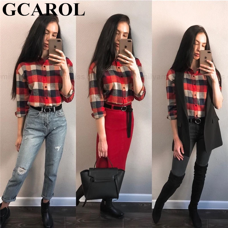 Today i want to review about GCAROL 2019 Early Spring Women Colorful Plaid Blouse Oversize Worsted Blends OL Work Shirt High Qua. I uncover this cool product from China Online Store, best manucafturer.