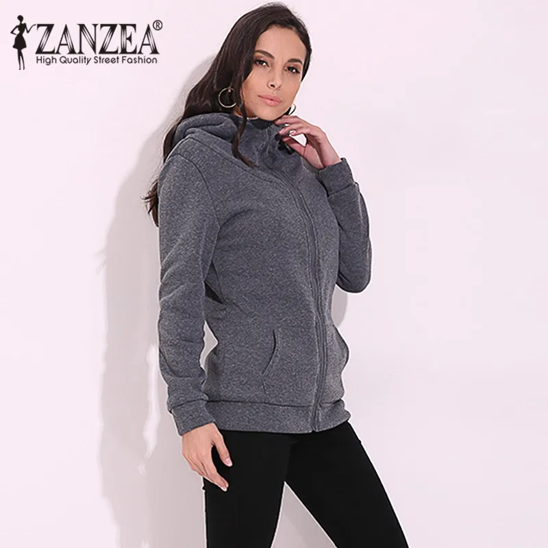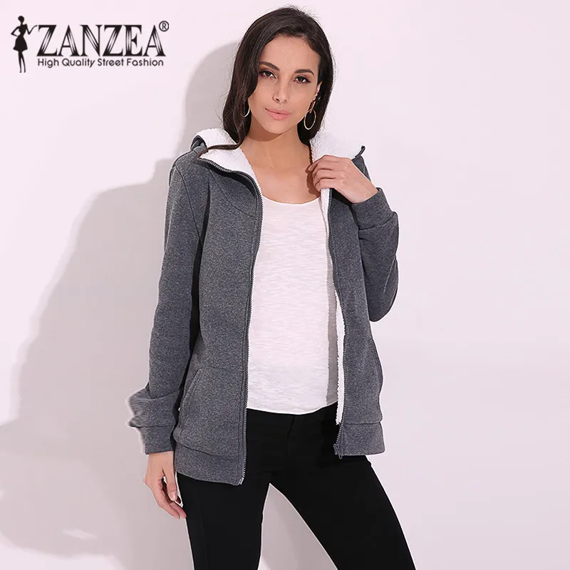Promo ZANZEA 4XL Winter Coats 2019 Autumn Women Long Hoodies Sweatshirts Casual Thick Fleece Zipper Outer