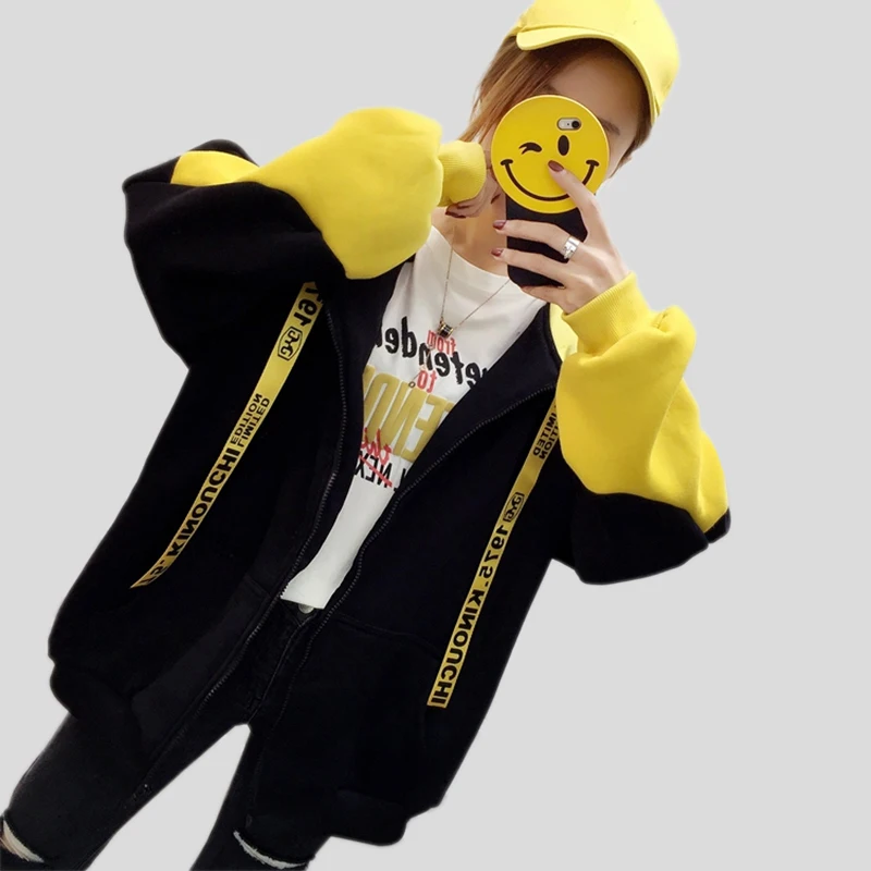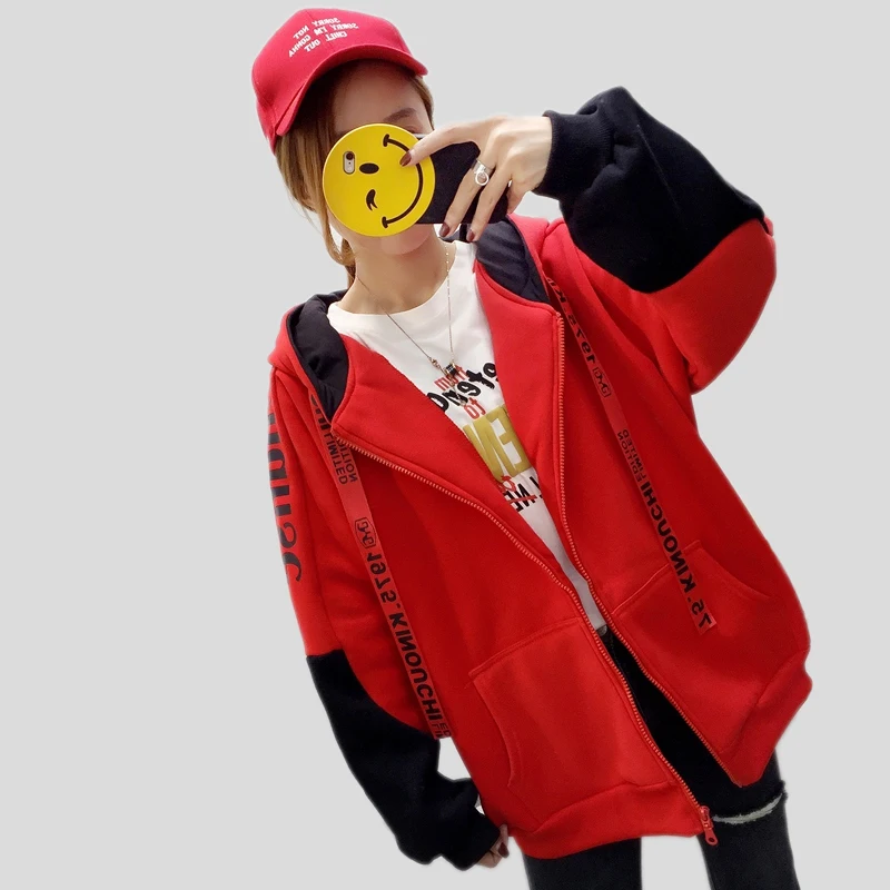 Promo 2018 autumn and winter plus velvet cap rope pocket zipper ladies hoodies Korean version of the new