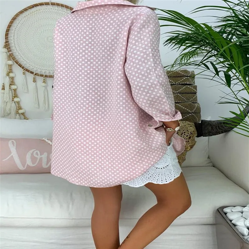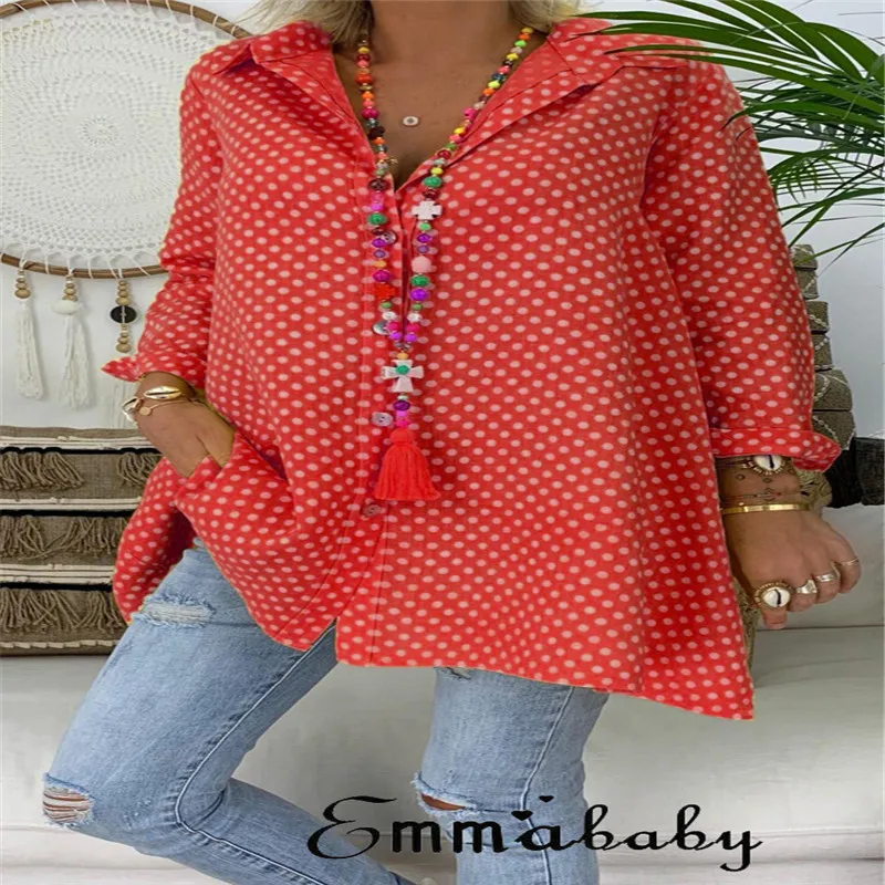 Promo 2019 Fashion Women Ladies V-Neck Casual Blouse Long Sleeve Polka Dot Shirt Tops Shirts New Japanese