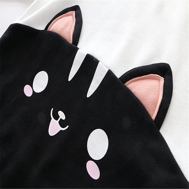 Best Merry Pretty Women Cartoon Embroidery Black Hooded Sweatshirts 2019 Winter Long Sleeve O-Neck Plus