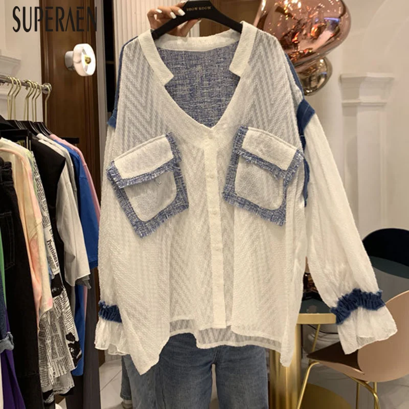 Promo SuperAen 2019 Summer New Korean Style Women Shirt Wild Casual Fashion Fashion Blouses and Tops Fema