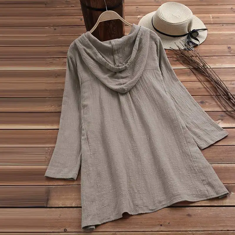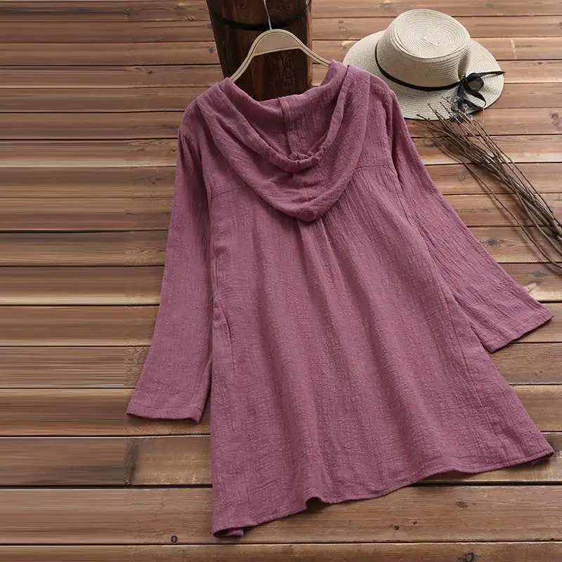 New 2019 Spring Hoodies Long Sleeve Shirt Women Buttons Down Solid Cotton Linen Blouse Female Casual Lo