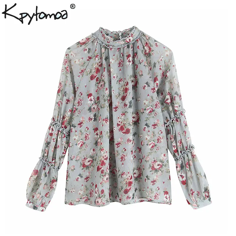 Buy Vintage Elegant Floral Print Ruffles Chiffon Blouses Women 2019 Fashion Long Sleeve See Through Loo