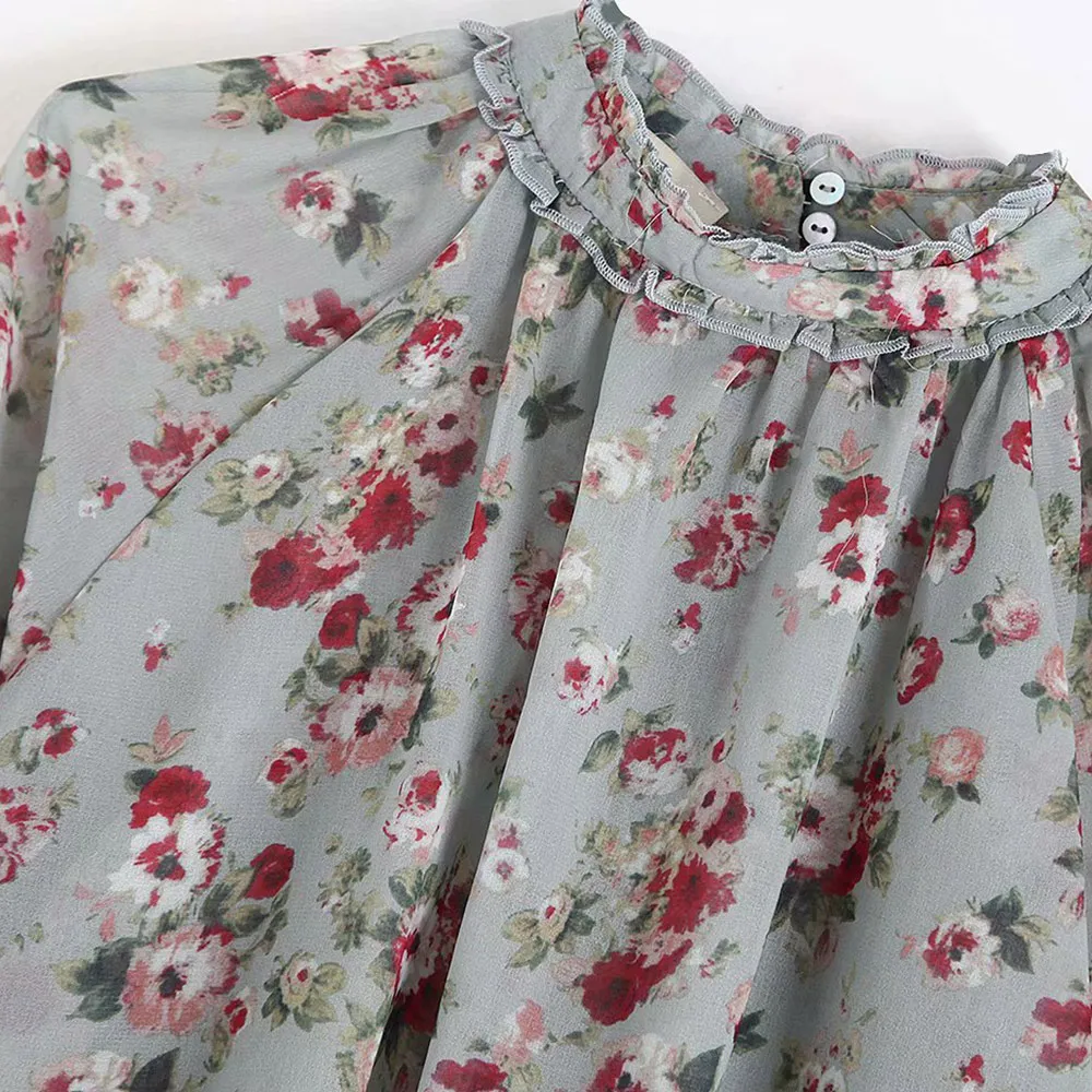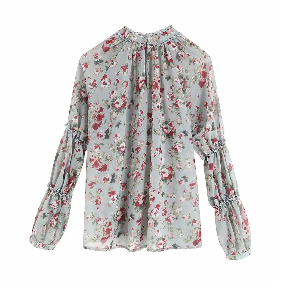 Best Vintage Elegant Floral Print Ruffles Chiffon Blouses Women 2019 Fashion Long Sleeve See Through Loo