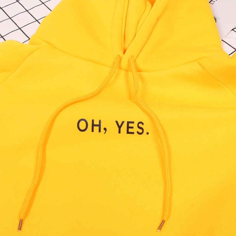 New "OH YES" Letter Hoodies Women Fleece Thick Fall Winter Long Sleeve Sweatshirt Women Pullover haraju