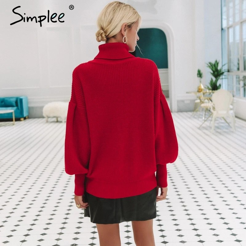 New Simplee Turtleneck knit plus size sweater women pullover female 2019 Autumn winter fashion lantern